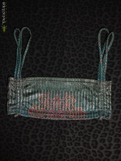 Crop Top ZigZag Drawstring / Bamboo Veg Dye Veg Print - CHARCOAL SANDSOTIME
