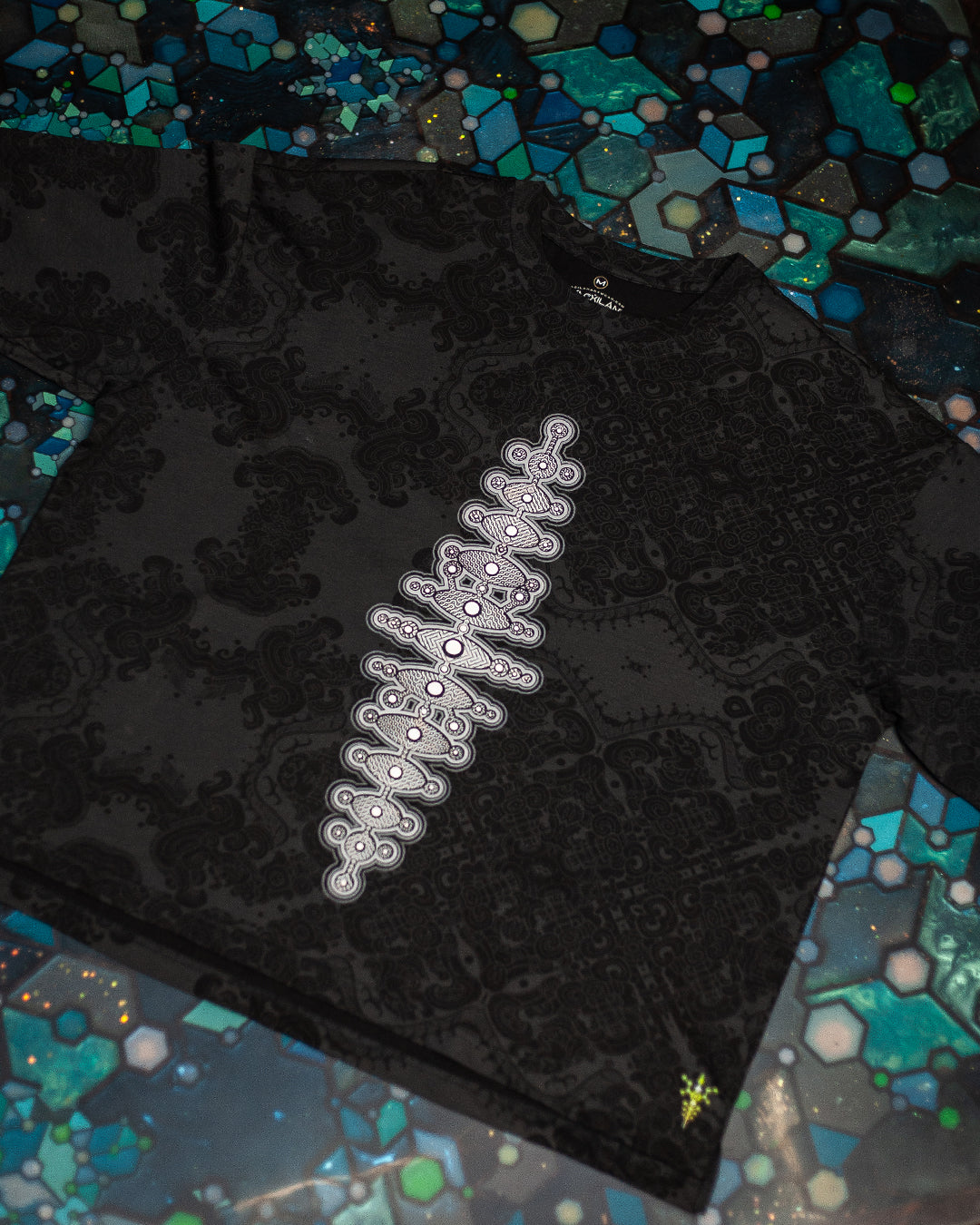 T-Shirt Oversized Men / Black Cotton Shinker - MAYAN CODEX Galactik Spine